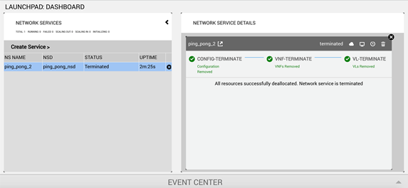 It may take several minutes for the service to come up. Status messages display on the Launchpad interface during the bring-up process. You can also open the Event Viewer or expand the Event Center for notifications and details about each event.