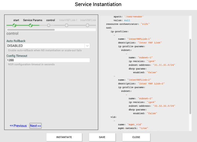 Note: The Save button allows you to save your NSR config content and edit it later if you are not ready to Instantiate.