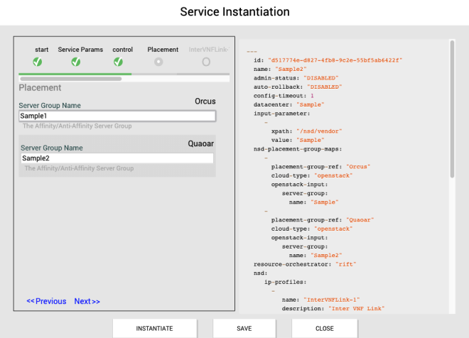 Carefully check your entries. Click INSTANTIATE to start the instantiation of the service or click SAVE if you are not ready to instantiate. Return to the Service Instantiation process at later date to continue with the configuration.