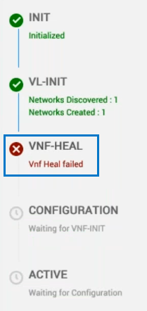 If the heal attempt fails, then the state changes to Vnf Heal failed.