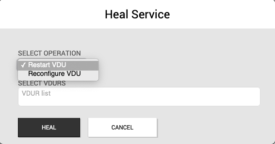 Restart VDU: This heal option attempts to restart a VM on the running NS. This is the default operation.