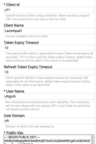 Token Expiry Timeout- Time period after which a generated Access Token expires in seconds. This is Client specific token expiry timeout. The global token-expiry-timeout is used if this value is not specified.