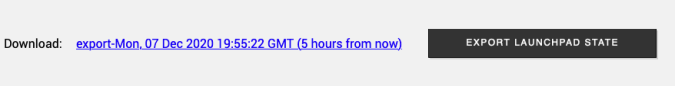 Launchpad exposes an RPC that enables easy exporting of Launchpad data to an archive file. Once the archive file is created, the user can download that file and store it anywhere. The archive file includes the key dataset required to restore a Launchpad instance to a new Launchpad instance as well as the key configuration and the operational state data. The data is converted to an XML format using the schema and saved to multiple XML files (configuration, operational data).