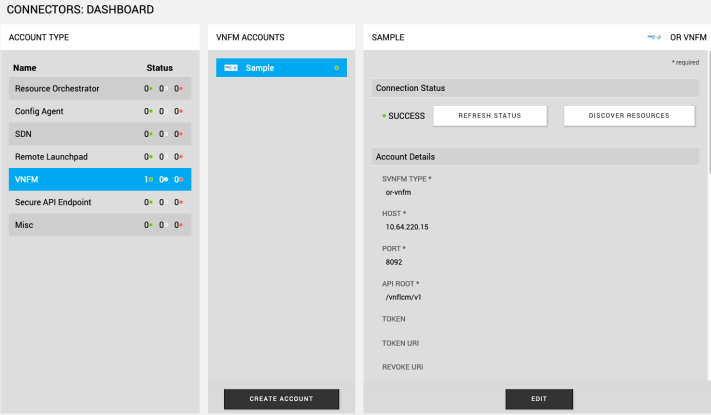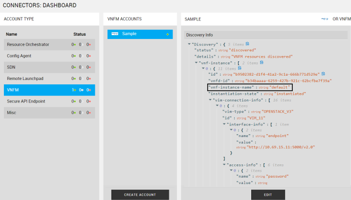 After adding an VNFM account, run an account discoveryto identify resources and map the specific resources to a VNFM. Click