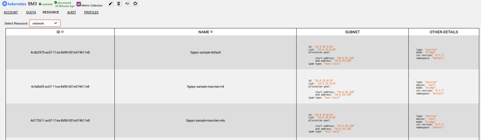 List subnet = This is applicable if the configuration carries ipam dict. This shows the default nw ‘default-k8s-network’ and the attached id, subnet, etc.