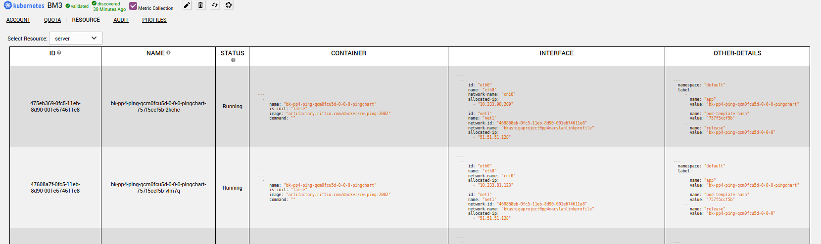 Name = Pod name (id and name both show the interface name because there is no uuid for an intf.)