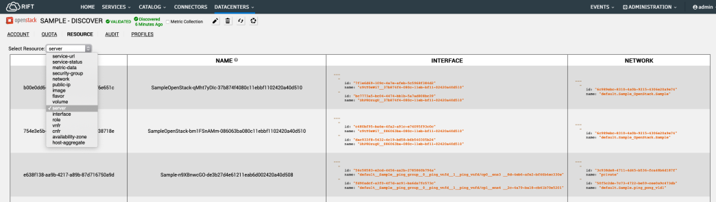 The examples below display the main resources used for discovery design (server, volume, network and helm).